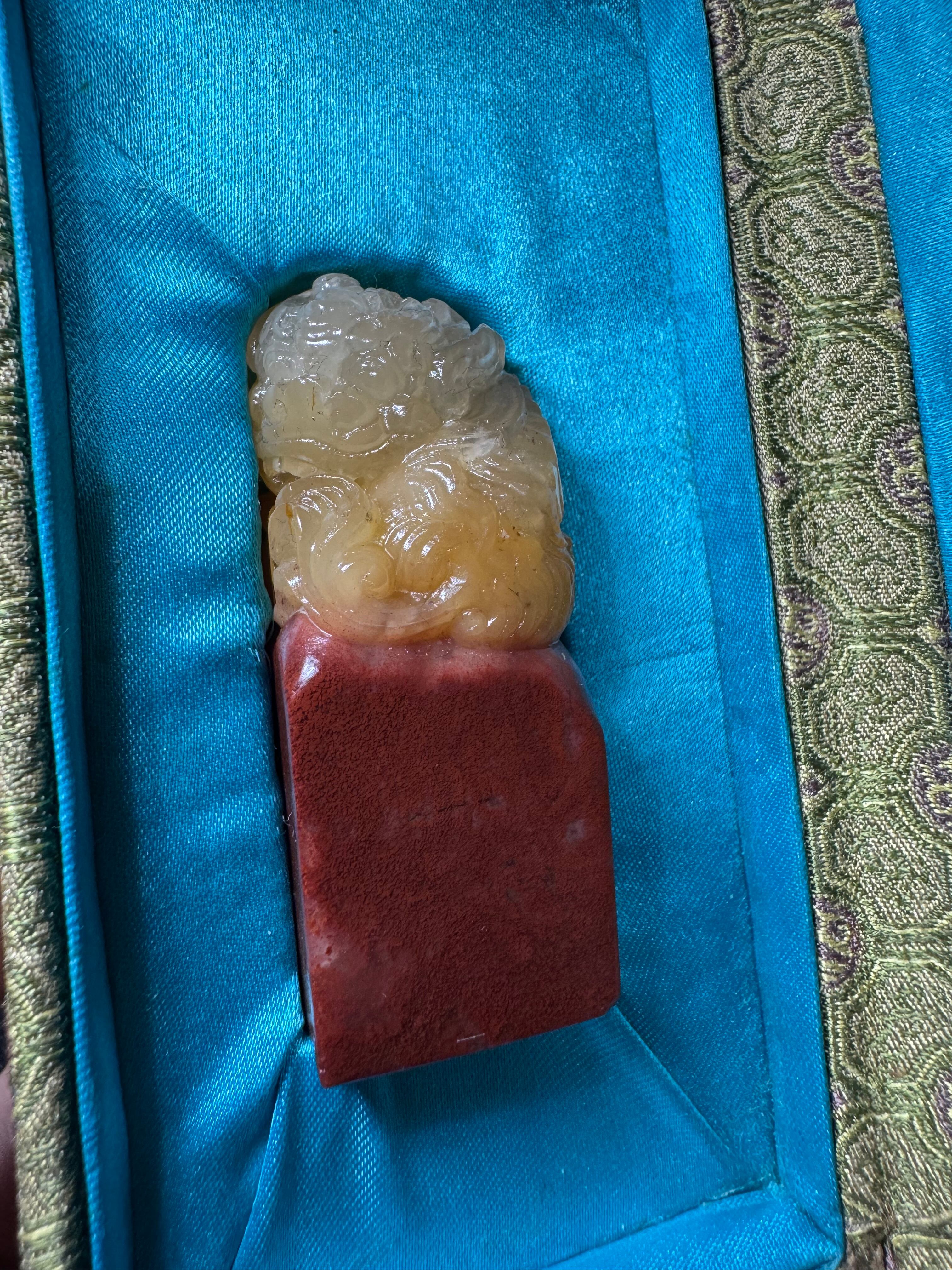 ストックの古印材です。お好きな方へ放出します。小さいながらも愛くるしい自然の色分けと細かい彫刻の意匠が美しい材。コレクションに如何